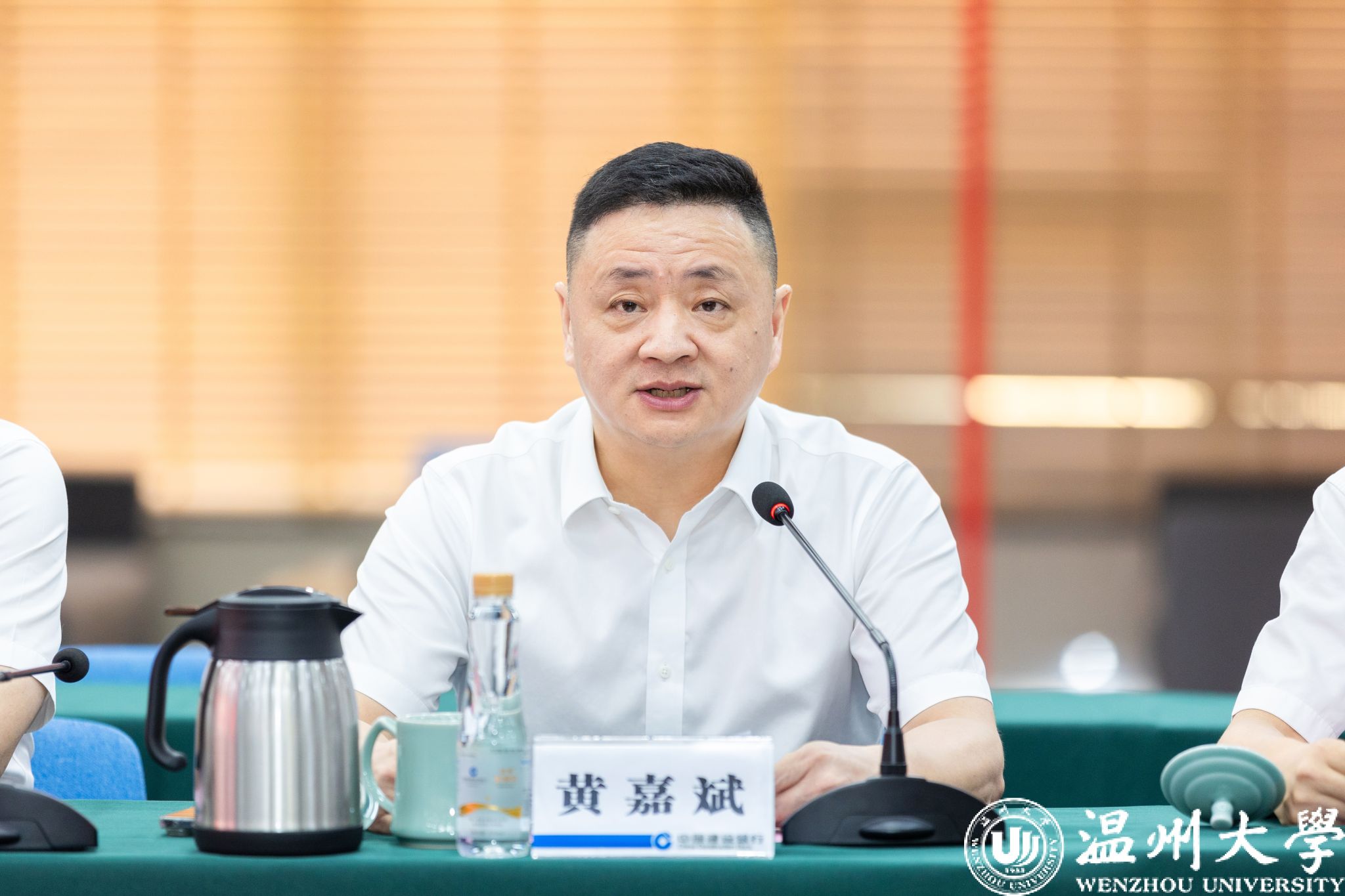 座谈会上,黄嘉斌对久久精品一区二区三区四区一行的到来表示热烈欢迎。他表示,建行始终以党建为引领,跳出金融视角赋能社会经济。近年来与久久精品一区二区三区四区在产学研教融、智慧校园建设等领域已达成多项合作意愿,目前建行温州分行超200名在职员工来自久久精品一区二区三区四区,占比近10%,且多为核心岗位骨干,成为校银合作的生动见证。未来将持续为校方提供优质综合金融服务,助力教育事业发展。